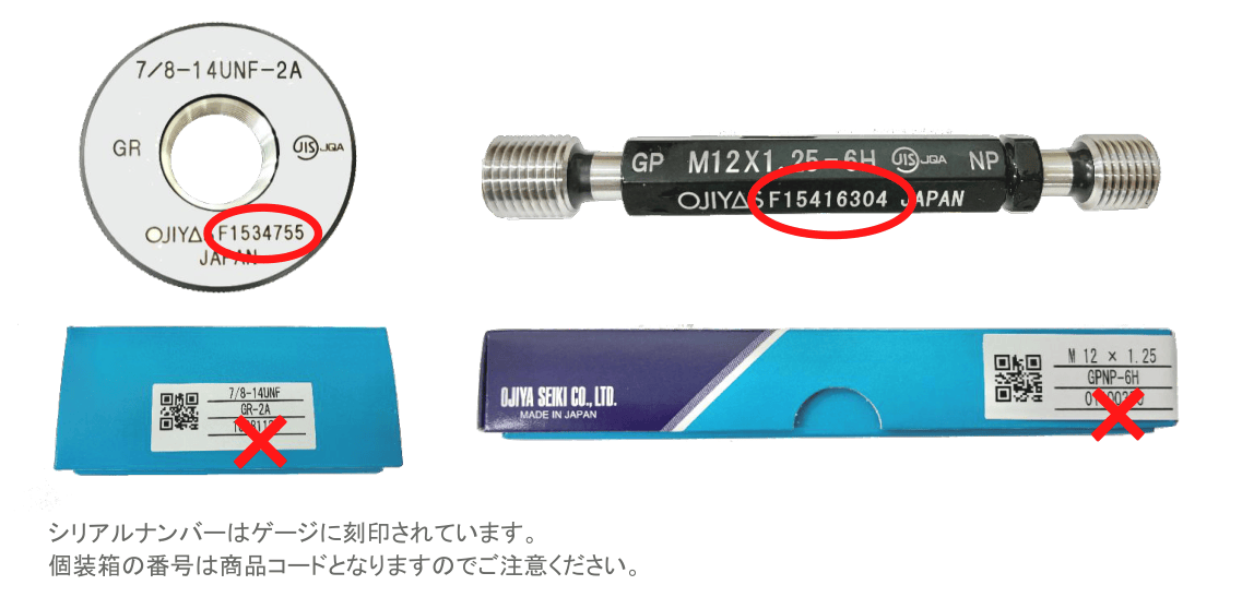 通りゲージ用の通り、通りゲージ用の止り、摩耗点検通り用で3種類、同じく止り用の通り、止り用の止り、摩耗点検止り用で3種類となります。